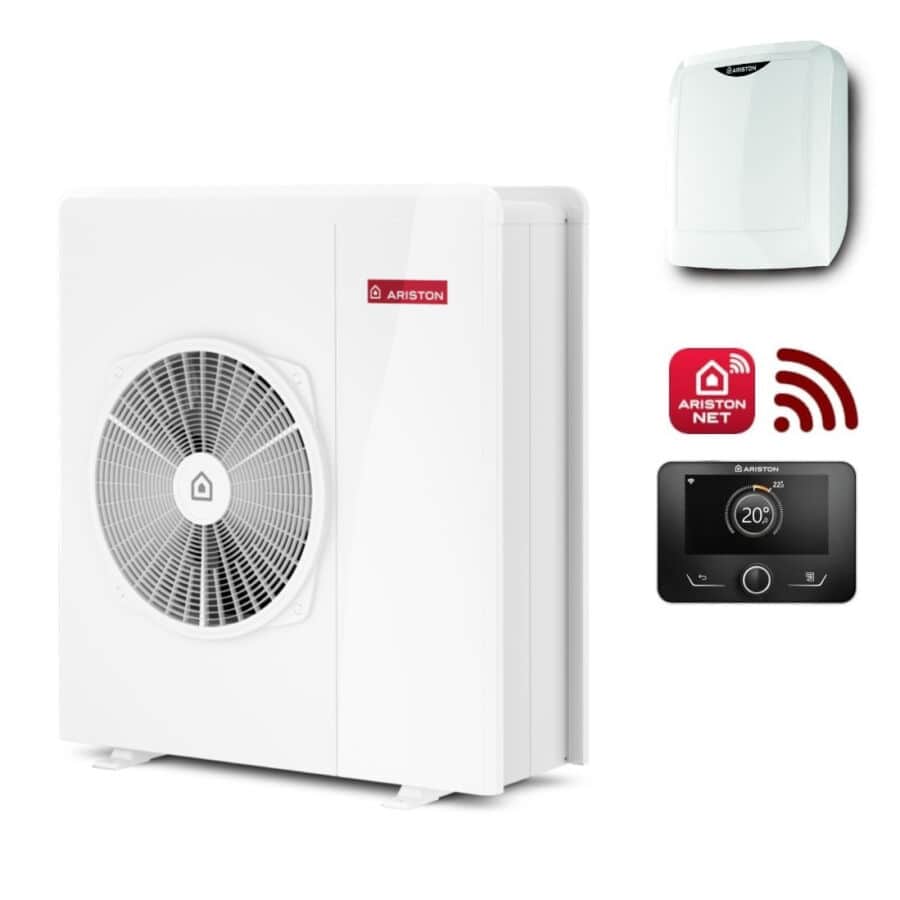 Az Ariston Nimbus Pocket 80 M NET inverteres monoblokk levegő-víz hőszivattyú helyiségfűtésre és hűtésre egyaránt alkalmazható. A hűtőkör hermetikusan el van zárva a kültéri egységben, az épületbe csak a vízvezeték megy be. A gyárilag beépített Light Gateway-nek köszönhetően csatlakozik az Ariston Net alkalmazáshoz. Az Ariston Net segítségével okostelefonjával, táblagépével vagy akár számítógépével is folyamatos megfigyelés alatt tarthatja a készüléket. Távolról tudja be- és kikapcsolni a hőszivattyút, beállítani a kívánt hőmérsékletet és a heti programot, ellenőrizni a fogyasztást, illetve megkötött karbantartási megállapodás esetén lehetőség van távoli segítségre a szervizközpont által. Az Ariston Nimbus Pocket 80 M NET egy fűtési/hűtési zóna vezérlésére alkalmas. A Sensys HD rendszervezérlő, valamint a külső hőmérséklet-érzékelő gyári tartozéka a rendszernek. A falra szerelhető Sensys HD nagyméretű, háttérvilágítással ellátott kijelzője egyszerűen kezelhető. Számos funkció beállítható, ami az Ön kényelmét és biztonságát szolgálja. A Sensys HD termosztát akár hat különböző zóna külön vezérlését teszi lehetővé. A hőmérséklet-szabályozás napi és heti szintű is lehet. A hőszivattyú napjaink egyik legkorszerűbb hűtőközegével, R32-vel üzemel, mely kiemelkedő energiahatékonyságot és magas komfortérzetet biztosít alacsonyabb környezeti terhelés mellett.